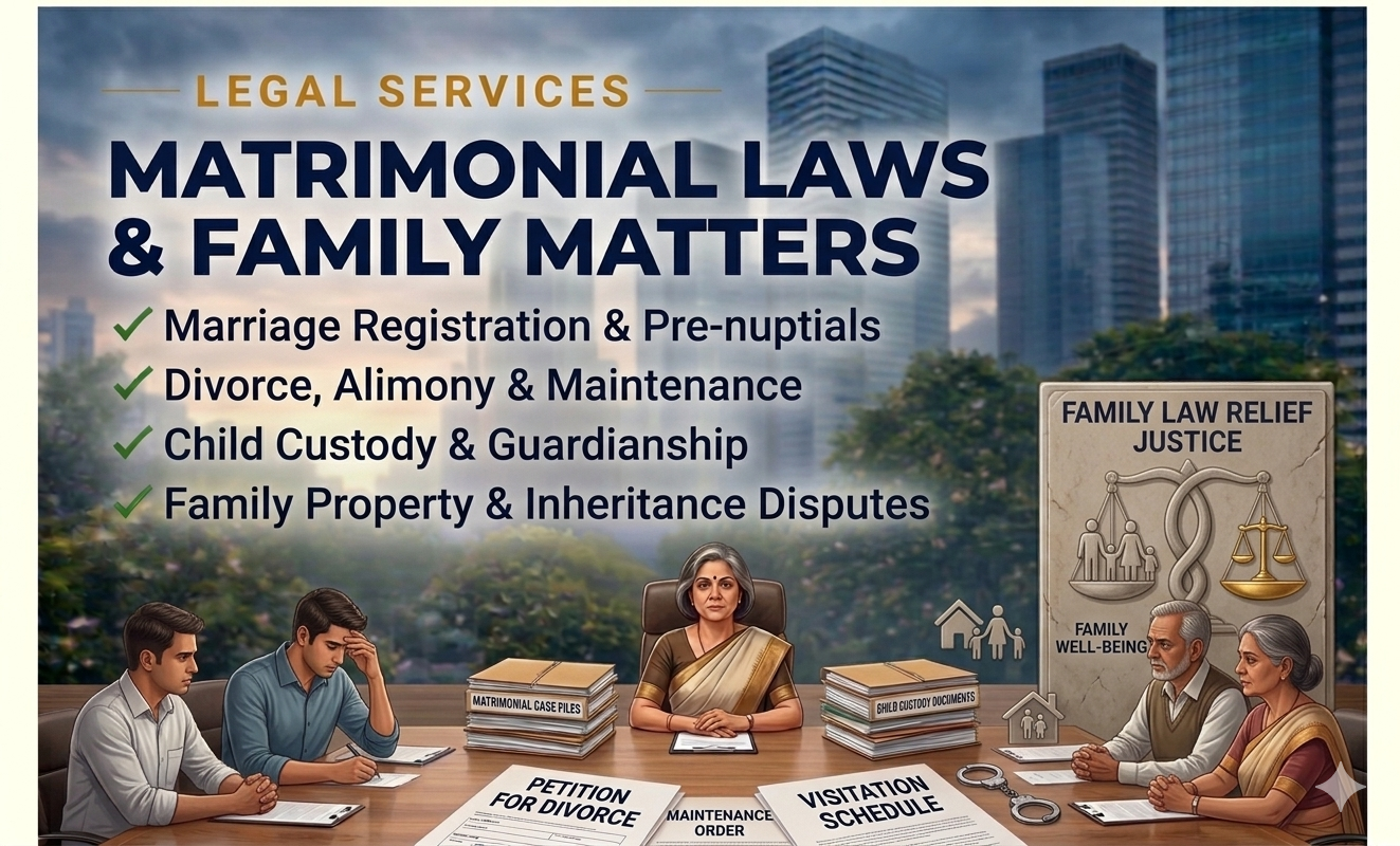 Matrimonial Disputes involve conflicts between spouses, encompassing issues like divorce, alimony, custody battles, and property disputes within marriage.